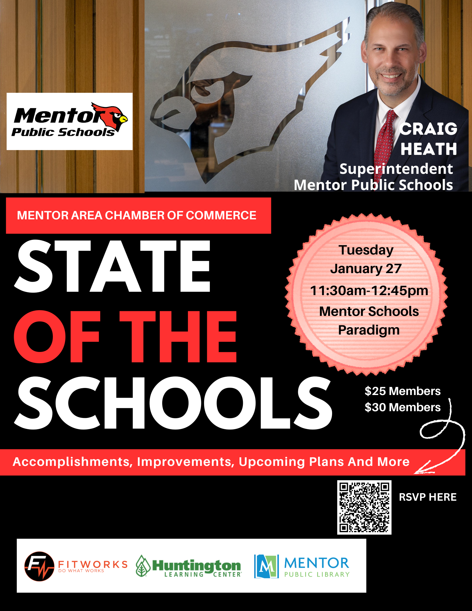 Join us for an insightful afternoon as Mentor Superintendent Craig Heath shares the latest accomplishments of our schools and unveils exciting plans for the future.